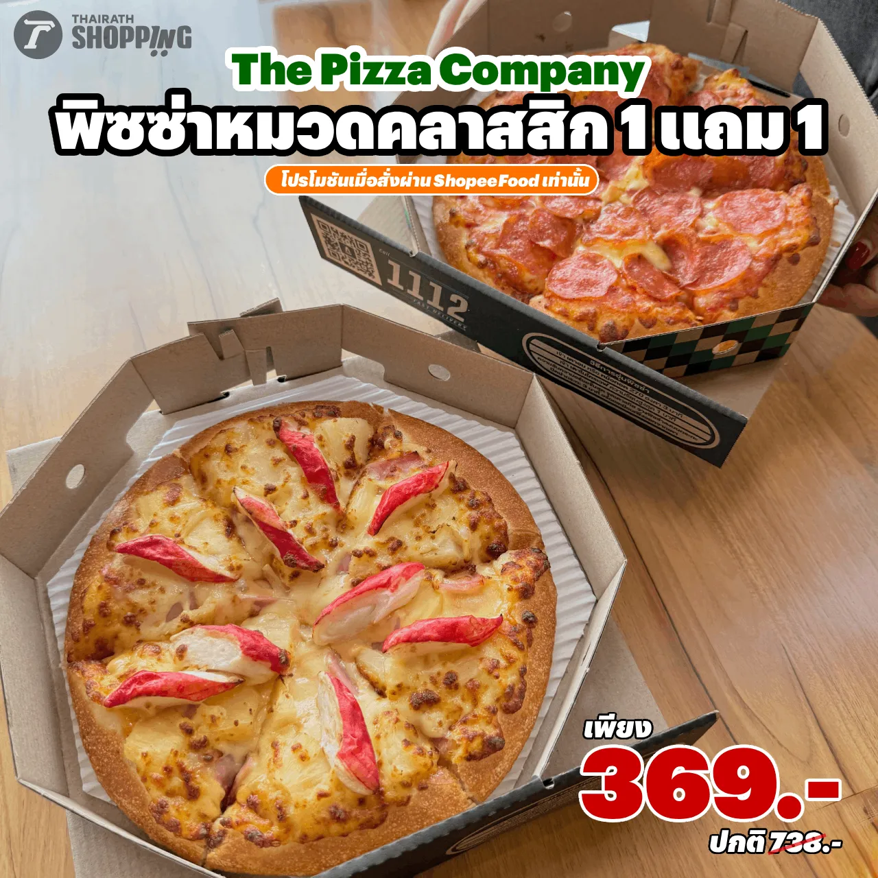 เหล่าพิซซ่าเลิฟเวอร์ต้องไม่พลาดกับอีกหนึ่งโปรโมชันสุดคุ้มจาก The Pizza Company อย่างโปรซื้อ 1 แถม 1 ที่มีพิซซ่ามาให้เลือกหลายหมวดหมู่ หลายหน้า ในราคาเริ่มต้นเพียง 369 บาทเท่านั้น ใครที่กำลังวางแผนปาร์ตี้ ไม่ว่าจะเป็นครอบครัว เพื่อนสนิท หรือที่ออฟฟิศ สามารถกดสั่งได้แล้ววันนี้ที่ ShopeeFood ในโปรนี้จะมีพิซซ่าอะไรน่าสนใจบ้างติดตามได้ที่นี่