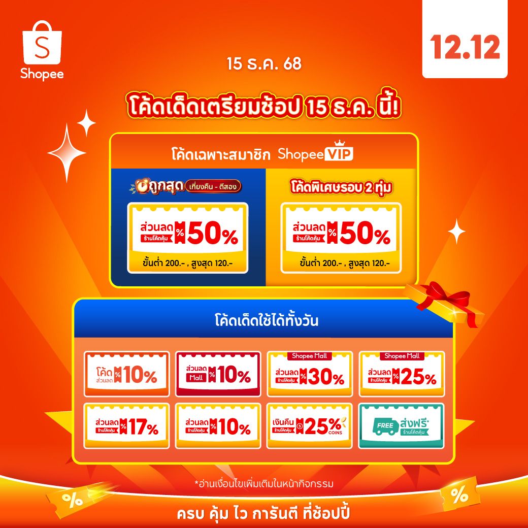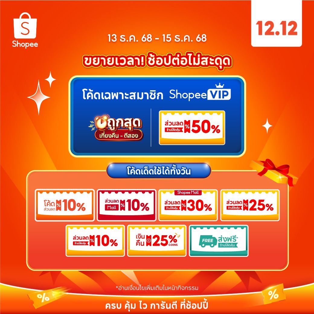 โค้ดส่วนลดสามารถใช้วันที่ 12-15 ธ.ค. 68