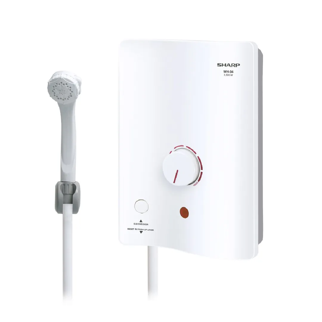 เครื่องทําน้ำอุ่น Sharp ขนาด 3,500 วัตต์ รุ่น WH-34 สีขาว ดูสะอาดตา เข้าได้กับห้องน้ำทุกสไตล์ มีฉลากประหยัดไฟเบอร์ 5 3 ดาว หัวฝักบัวสามารถปรับความแรงของน้ำได้ 3 ระดับ ได้แก่ Jet (น้ำพุ่งแรงเป็นเส้นตรง), Spray (โปรยปรายคล้ายสายฝน) และ Comfort (นุ่มนวล สบายผิว) ควบคุมการทำงานด้วยระบบ Flow Switch เครื่องหยุดทำงานทันทีเมื่อไม่มีน้ำไหลผ่าน อาบน้ำอย่างปลอดภัยด้วยระบบ ELB ตัดกระแสไฟภายใน 0.1 วินาที เมื่อเกิดไฟฟ้ารั่ว และมาตรฐานการป้องกันน้ำระดับ IP25