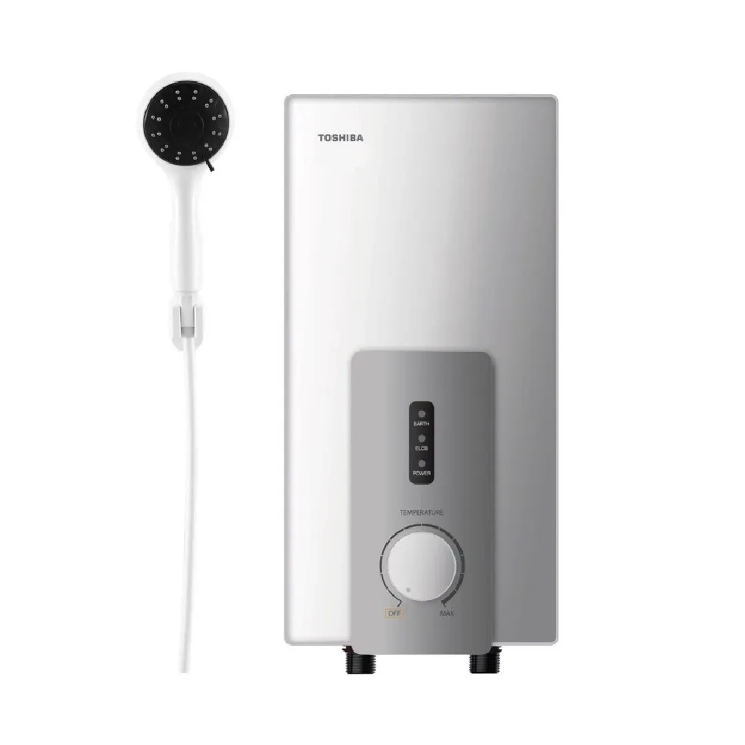 เครื่องทำน้ำอุ่น รุ่น DSK45S5KW ยี่ห้อ TOSHIBA ขนาด 4,500 วัตต์ ทำความร้อนได้เร็วและมีอุณหภูมิคงที่ตลอดการใช้งาน ด้วยชุดทำความร้อนทองแดง และระบบ Whirl Water Flow ที่ช่วยให้น้ำหมุนเวียนได้ดีขึ้น ควบคุมอุณหภูมิง่ายด้วยปุ่มบิด ส่วนฝาครอบตัวเครื่องทำจากพลาสติก ช่วยป้องกันละอองน้ำได้ดี มาพร้อม LED Display แสดงสถานะและอุณหภูมิแม่นยำ รวมทั้งมีระบบป้องกันไฟฟ้ารั่ว ELCB มาตรฐานการกันน้ำระดับ IP25 และระบบตรวจเช็กสายดินอัตโนมัติ ช่วยให้อาบน้ำได้อย่างสบายใจ ไร้กังวล