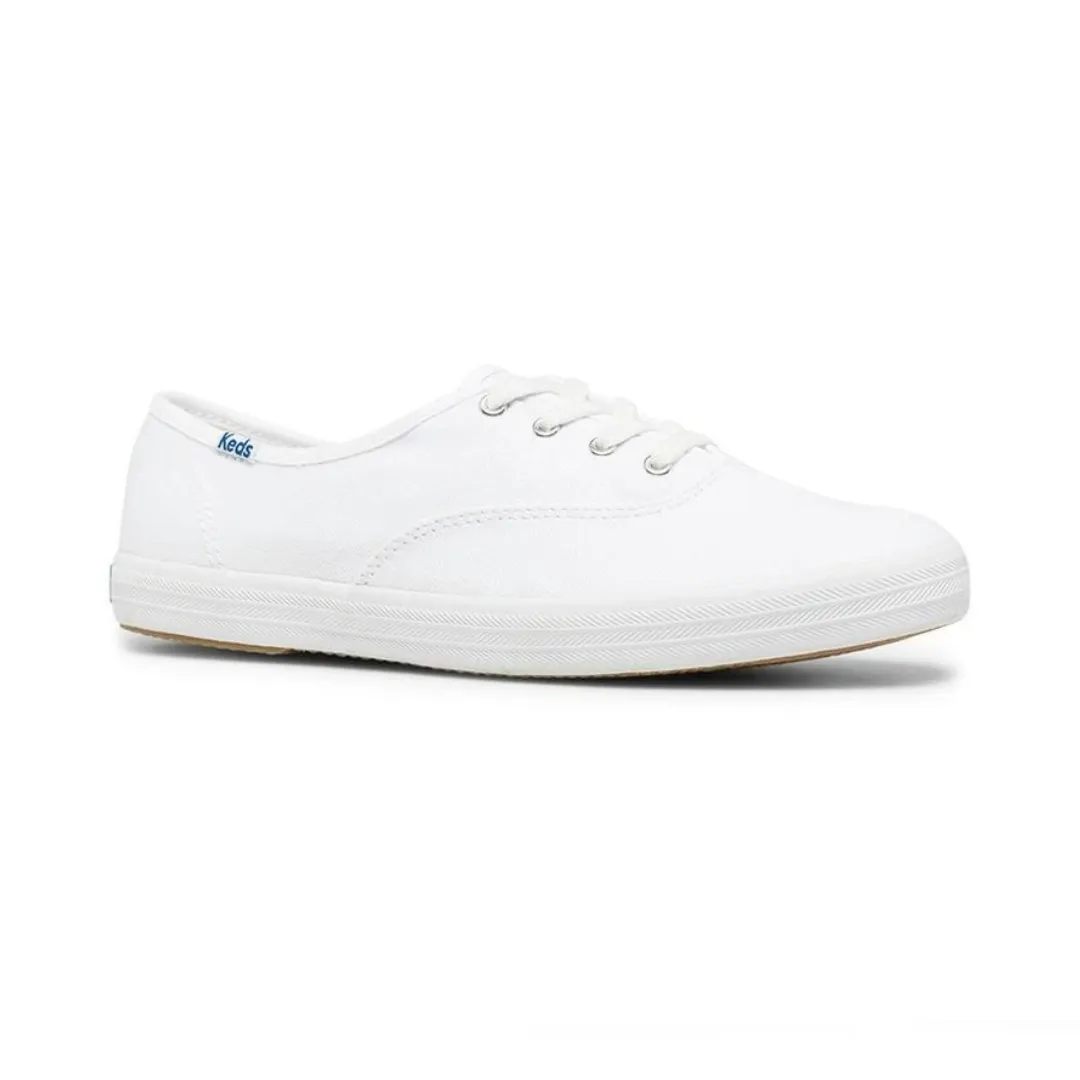 Keds - Champion Organic Cotton รองเท้าผ้าใบสีขาวผู้หญิงรุ่น Signature และรุ่นขายดีของแบรนด์ ด้านนอกผลิตจากผ้าฝ้ายออร์แกนิก พื้นรองเท้าด้านในบุด้วย Softerra™ ทำให้พื้นรองเท้ามีความนุ่ม ทนทาน และระบายอากาศได้ดี ส่วนพื้นรองเท้าด้านนอกทำจากยางที่มีความยืดหยุ่นและน้ำหนักเบา สามารถหยิบมาใส่ในชีวิตประจำวันได้ง่าย แมตช์ได้ทั้งลุคทางการและลุคลำลอง