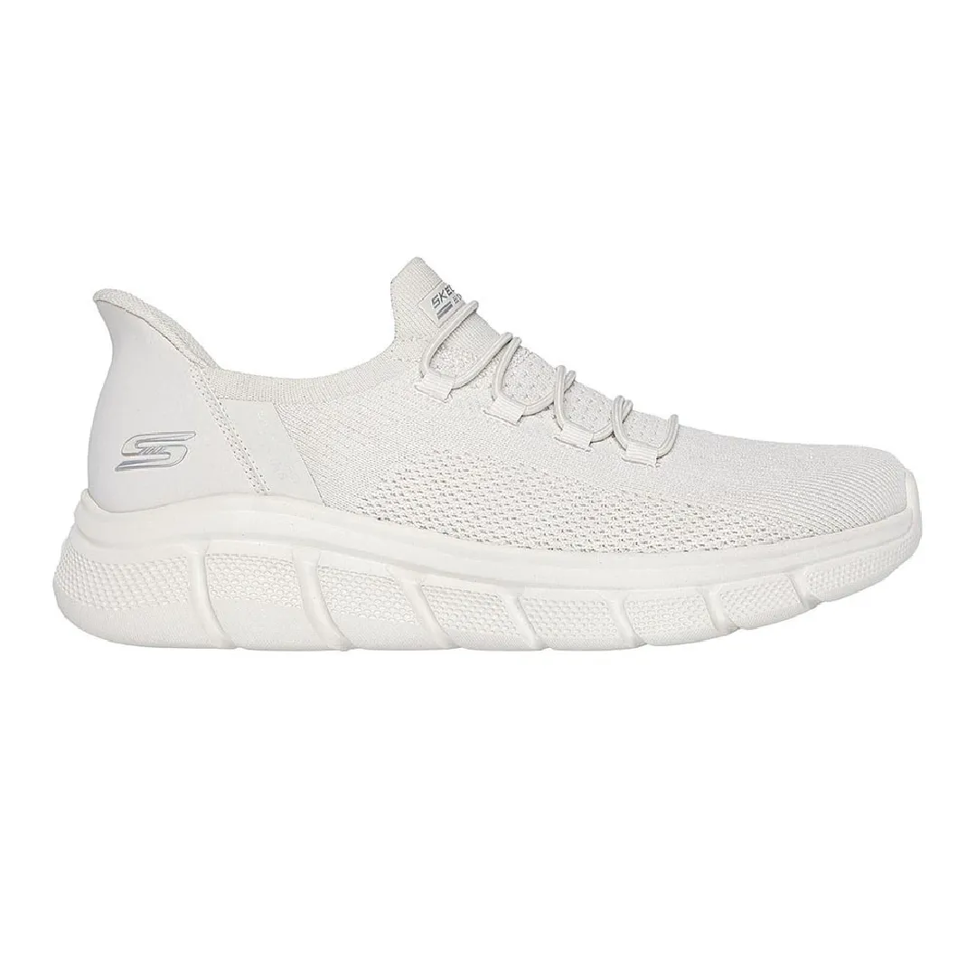 รองเท้าผ้าใบสีขาว Off White สำหรับผู้ชาย รุ่น Rugged Edge จากคอลเลกชัน BOBS B Flex ของแบรนด์ Skechers มีจุดเด่นอยู่ที่การออกแบบมาในทรง Slip-ins พร้อมเชือกผูกแบบตายตัว ใส่ง่าย โดยไม่ต้องก้มหรือใช้มือจับรองเท้า มาพร้อมพื้นรองเท้าหนานุ่ม Skechers Memory Foam™ และ Comfort Pillow™ ช่วยกระจายน้ำหนักและลดแรงกระแทกขณะสวมใส่ ทำให้รู้สึกสบายเท้า ใส่เดินได้นานโดยไม่รู้สึกเมื่อย และไม่ต้องกังวลว่ารองเท้าจะกัดเท้า