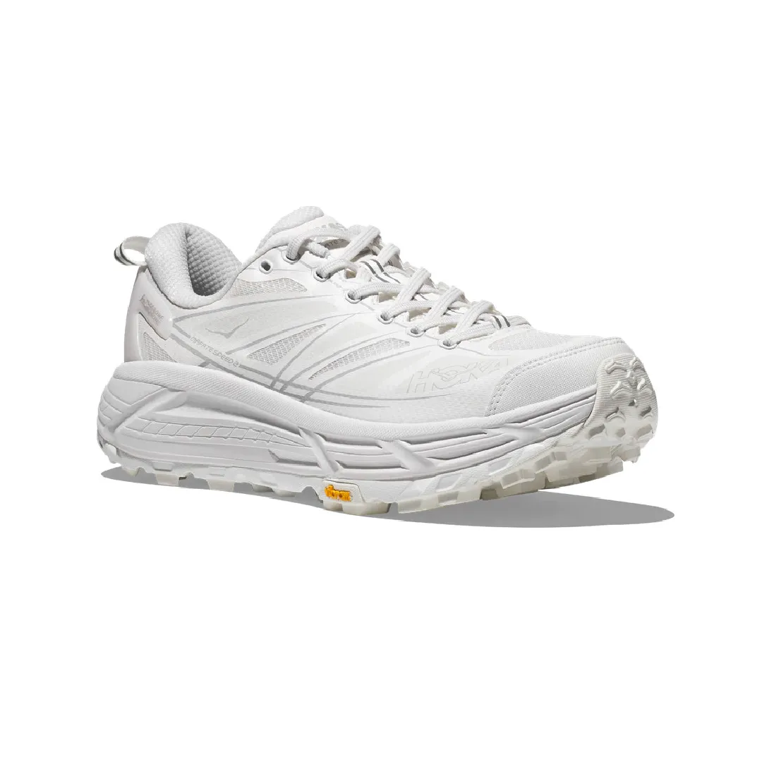 HOKA - Mafate Speed 2 รองเท้าผ้าใบสีขาวที่สวมใส่ได้ทุกเพศ พื้นรองเท้ามาในทรง Meta-Rocker บริเวณหัวและส้นรองเท้ามีความโค้งขึ้นเล็กน้อย ดูดซับแรงกระแทกและซัพพอร์ตเท้าได้ดีเยี่ยม ทำให้เคลื่อนไหวได้อย่างคล่องแคล่ว พื้นรองเท้าด้านนอก Vibram Mega-Grip ยึดเกาะได้ดีเยี่ยมในทุกสภาพพื้นผิว รองเท้ามีน้ำหนักเบา สามารถสวมใส่ได้หลายโอกาส ทั้งใส่ลำลอง ใส่ออกกำลังกาย และใส่วิ่งเทรล