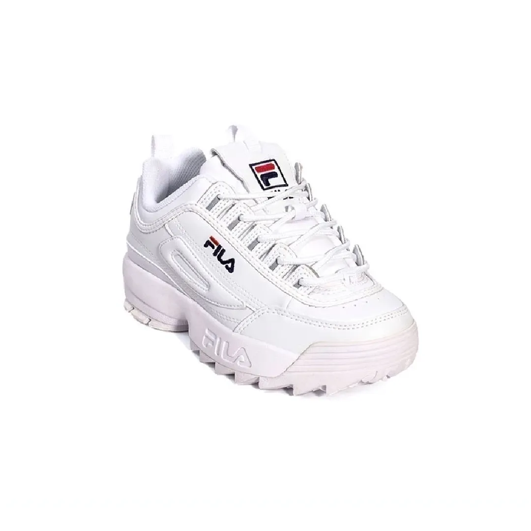 รองเท้าผ้าใบสีขาวผู้หญิง FILA รุ่น Disruptor 2 1998 โดดเด่นด้วยส้นรองเท้าแบบฟันเลื่อย สูง 5.5 เซนติเมตร นอกจากจะมีความแข็งแรงทนทานแล้ว ยังช่วยเสริมลุคให้ขาดูเรียวยาวขึ้นอีกด้วย เหมาะสำหรับสาวๆ ที่มองหารองเท้าผ้าใบส้นสูงที่สวมใส่สบาย และแมตช์กับเสื้อผ้าได้ทุกลุค ทั้งลุคหวาน ลุคเปรี้ยว หรือลุคเท่