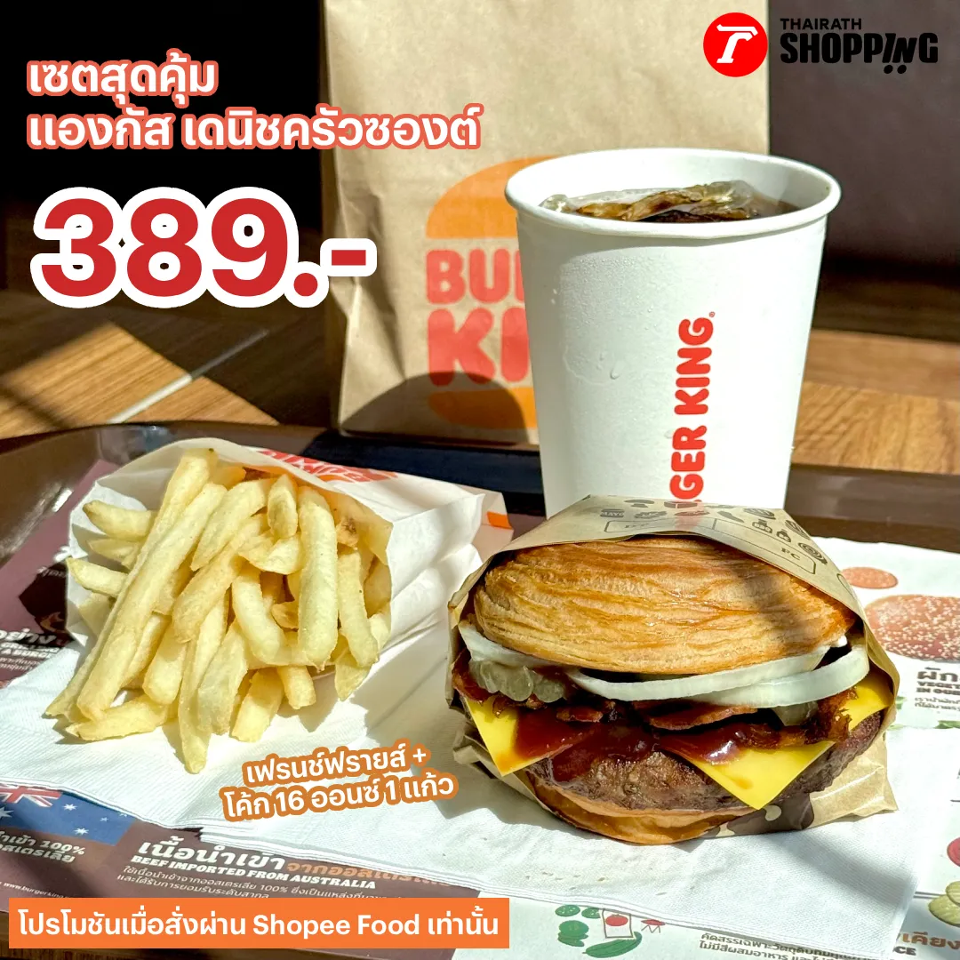 เดนิชครัวซองต์เบอร์เกอร์ทั้ง 2 เมนู พร้อมเสิรฟ์ความพรีเมียมให้ได้ลิ้มลองแล้ววันนี้ที่ Burger King ทุกสาขา พร้อมโปรโมชันชุดอิ่มคุ้มให้อร่อยกันแบบยกเซตเมื่อสั่งผ่าน Shopee Food คนรักเบอร์เกอร์ห้ามพลาด สั่งมาลองด่วน!