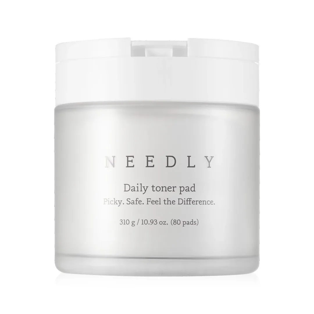NEEDLY โทนเนอร์แพดตัวดังจากประเทศเกาหลีใต้ เหมาะสำหรับคนเป็นสิวและผิวแพ้ง่าย มีส่วนผสมของกรดไฮยาลูโรนิก ช่วยเติมความชุ่มชื้น พร้อมเสริมเกราะป้องกันผิวให้แข็งแรง ผสาน BHA และ PHA ช่วยผลัดเซลล์ผิวอย่างอ่อนโยน มีส่วนช่วยลดปัญหาสิวอุดตัน ไม่มีส่วนผสมของน้ำหอมสังเคราะห์ แผ่นโทนเนอร์มีสัมผัสนุ่ม สามารถใช้ได้ 2 ด้าน ด้านผิวนูนสำหรับผลัดเซลล์ผิว ด้านผิวเรียบสำหรับทำความสะอาดผิว และสามารถใช้มาสก์ในบริเวณที่ต้องการบำรุงเป็นพิเศษได้ มีค่า pH ระดับ 5 ทำให้ไม่ระคายเคืองผิว