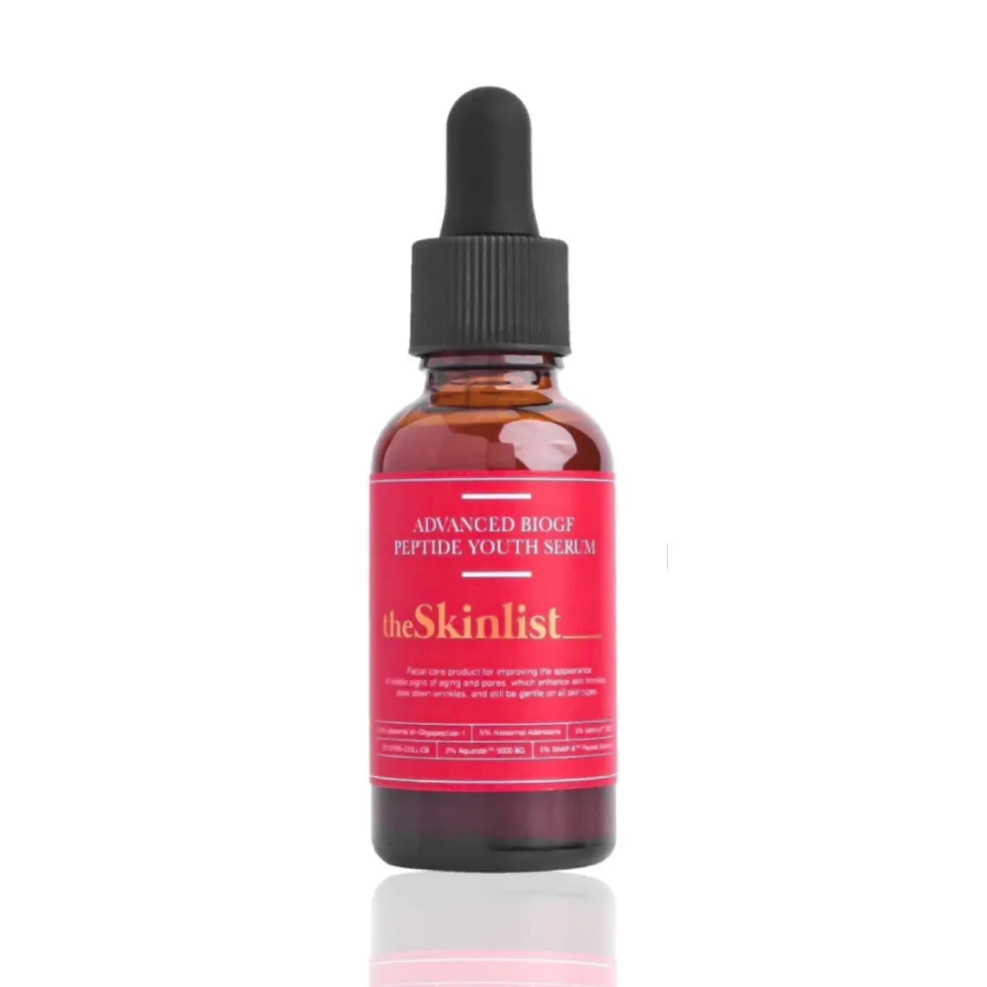 THESKINLIST Advanced BioGF Peptide Youth Serum เซรั่มที่อุดมด้วยเปปไทด์หลายชนิด ช่วยเพิ่มความยืดหยุ่นให้ผิวไม่หย่อนคล้อย ช่วยกระชับรูขุมชนให้ผิวดูเนียนละเอียด พร้อมช่วยลดเลือนริ้วรอยเล็กๆ ที่เกิดจากแสดงสีหน้าให้ดูจางลง นอกจากนี้ยังมีเซราไมด์ ช่วยเสริมเกราะป้องกันผิวให้แข็งแรง เซรั่มสูตรนี้เหมาะกับทุกสภาพผิว และยังเหมาะสำหรับคนที่ไม่สามารถใช้สกินแคร์ที่มีส่วนผสมของเรตินอลได้