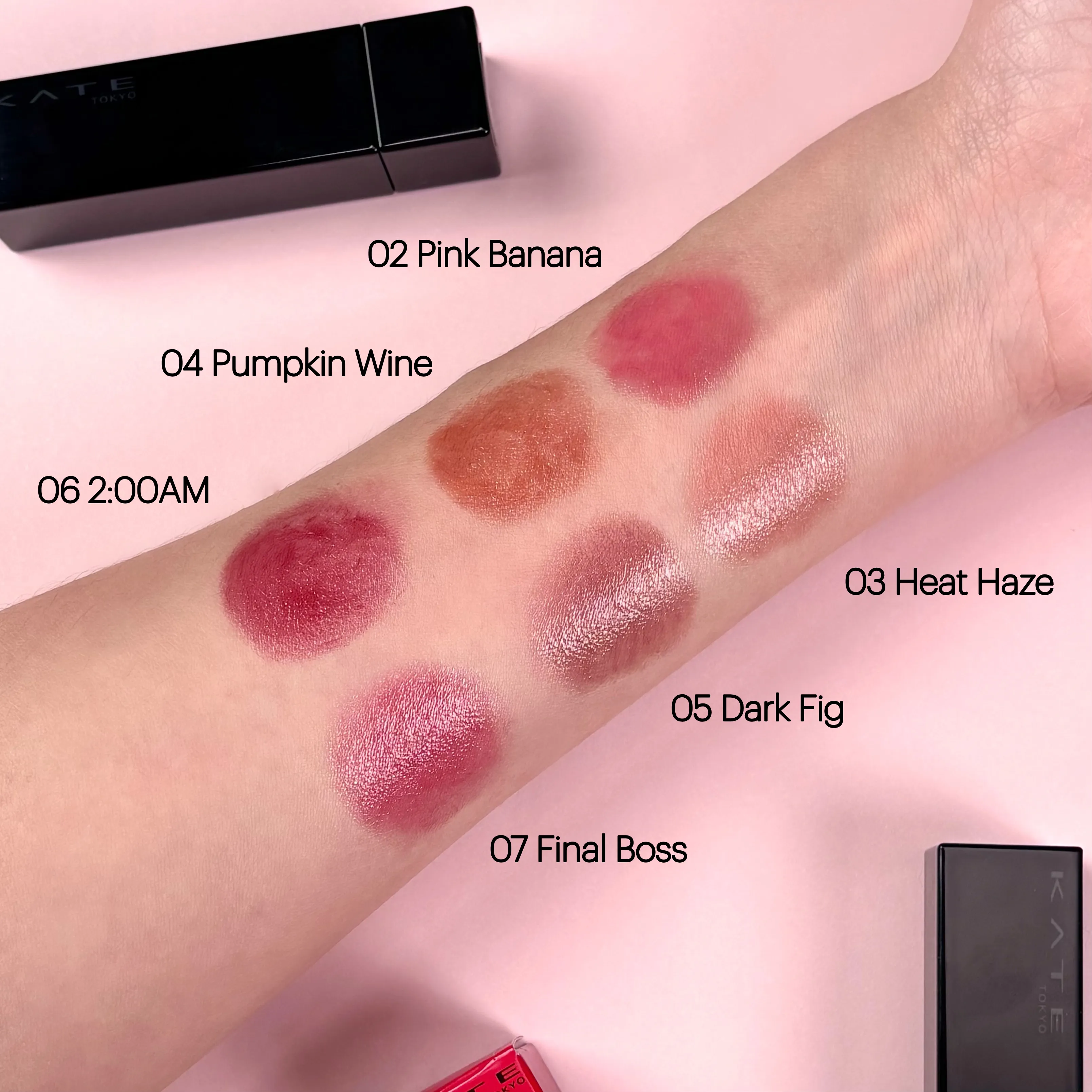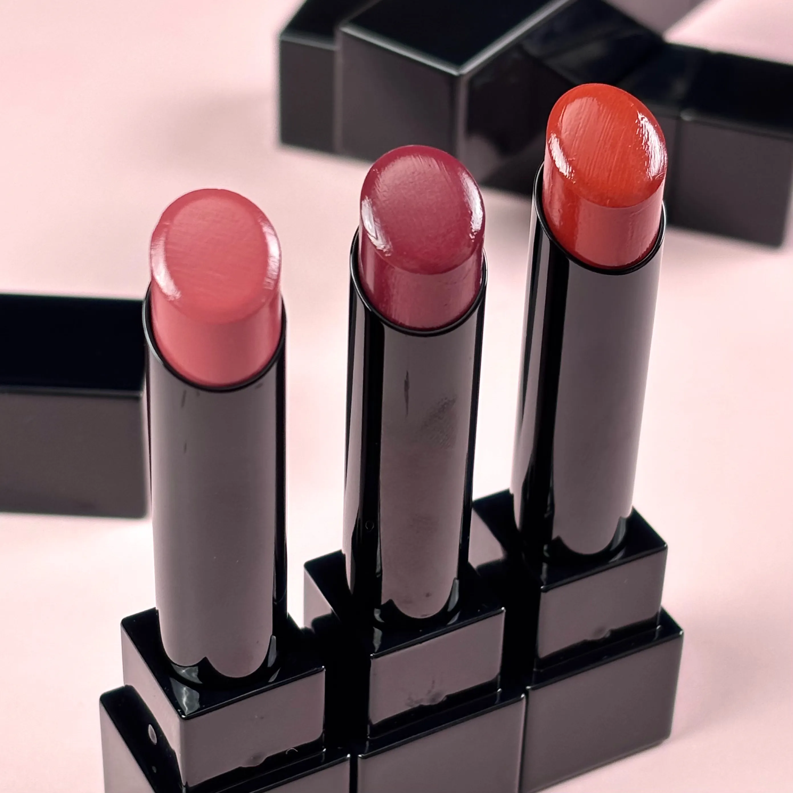เนื้อลิปสติกมีความชุ่มชื้นคล้ายลิปบาล์ม บางเบา ทาแล้วรู้สึกสบายปาก มอบฟินิชริมฝีปากฉ่ำวาว อวบอิ่ม แลดูสุขภาพดี โดยไม่ทำให้รู้สึกเหนียวเหนอะหนะ และสามารถทาซ้ำเพื่อเพิ่มความชัดของสีได้ตามต้องการ