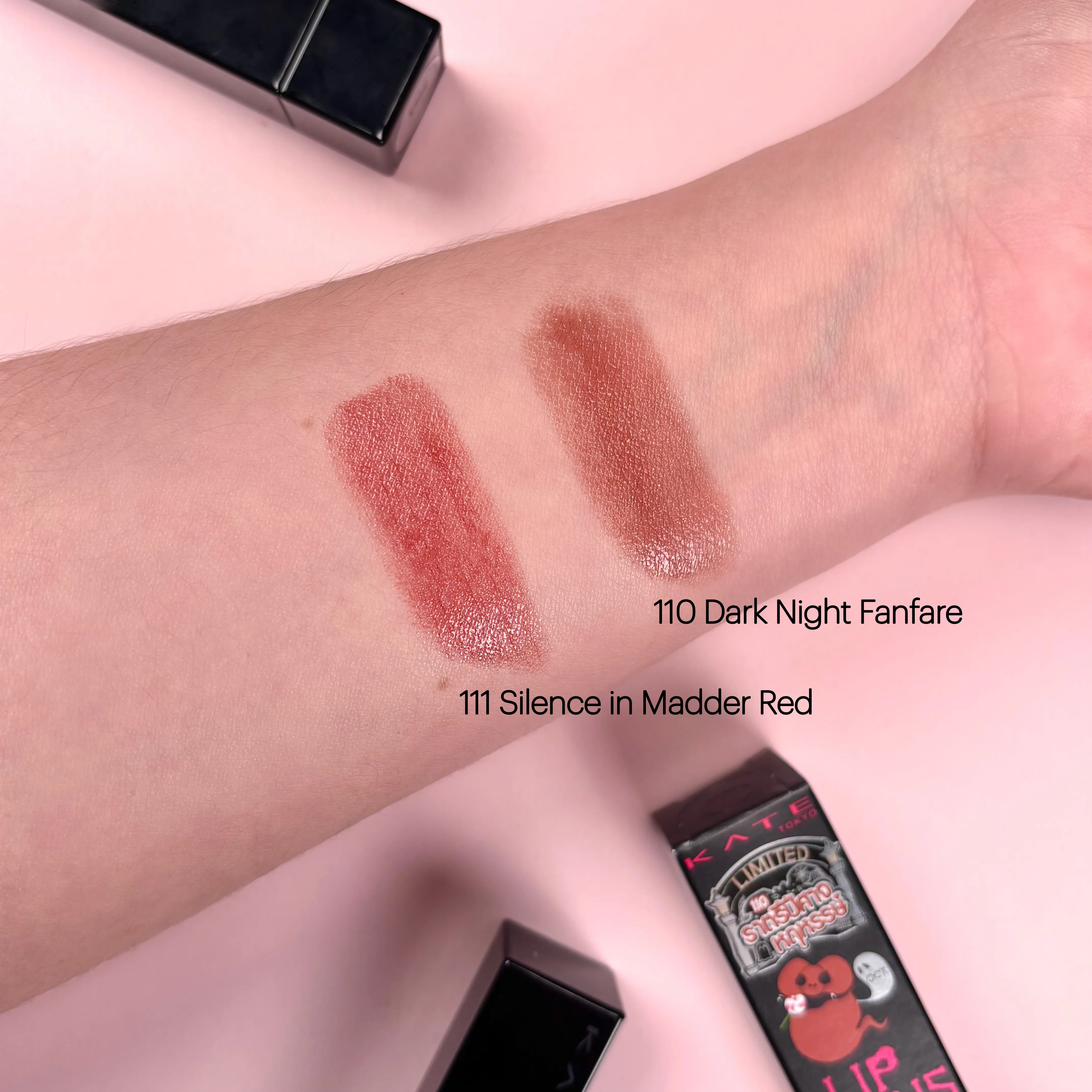 KATE Lip Monster รุ่น Limited Edition ซึ่งเป็นสีพิเศษที่ออกมาต้อนรับเทศกาลฮาโลวีน แบ่งเป็น 2 คอลเลกชัน มาในกล่องแพ็กเกจที่มีลวดลายแตกต่างกัน ได้แก่ Creamy Monster กล่องแพ็กเกจสีแดงอมน้ำตาล และ My Lip Monster กล่องแพ็กเกจสีดำแดง