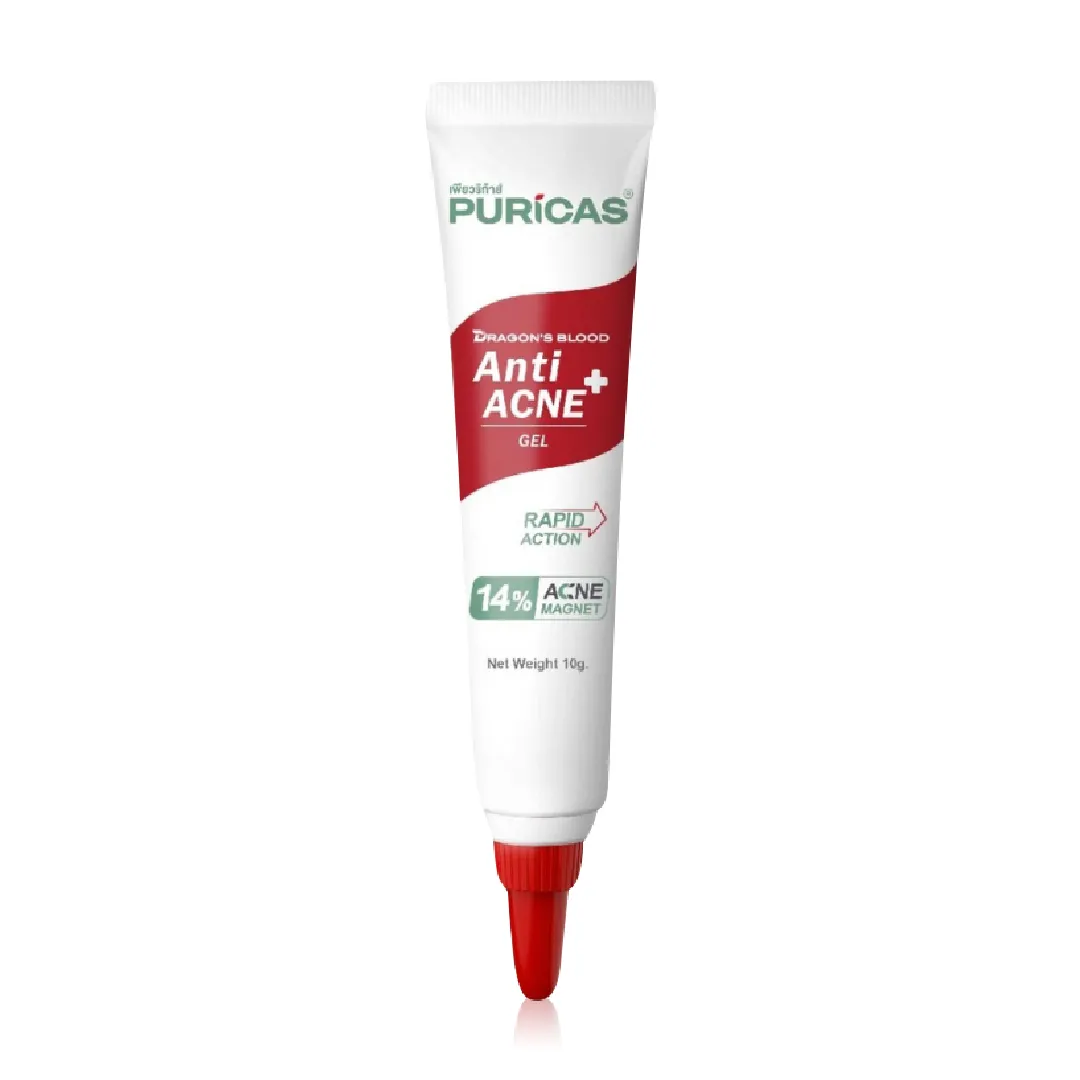 Puricas เจลแต้มสิวที่อุดมไปด้วยส่วนผสมจากธรรมชาติ อาทิ Dragon's Blood Extract, Mangosteen Extract, Tea Tree Oil ผสาน Horse Oil จึงมีส่วนช่วยดูแลปัญหาสิวจากต้นเหตุ ทำให้สิวแห้งไวขึ้น นอกจากนี้ ยังมีส่วนช่วยสมานแผล ฟื้นฟูรอยสิว และปรับสภาพผิวให้แลดูเรียบเนียนขึ้นได้อีกด้วย เหมาะสำหรับผู้ที่มีปัญหาสิวอักเสบและสิวอุดตัน