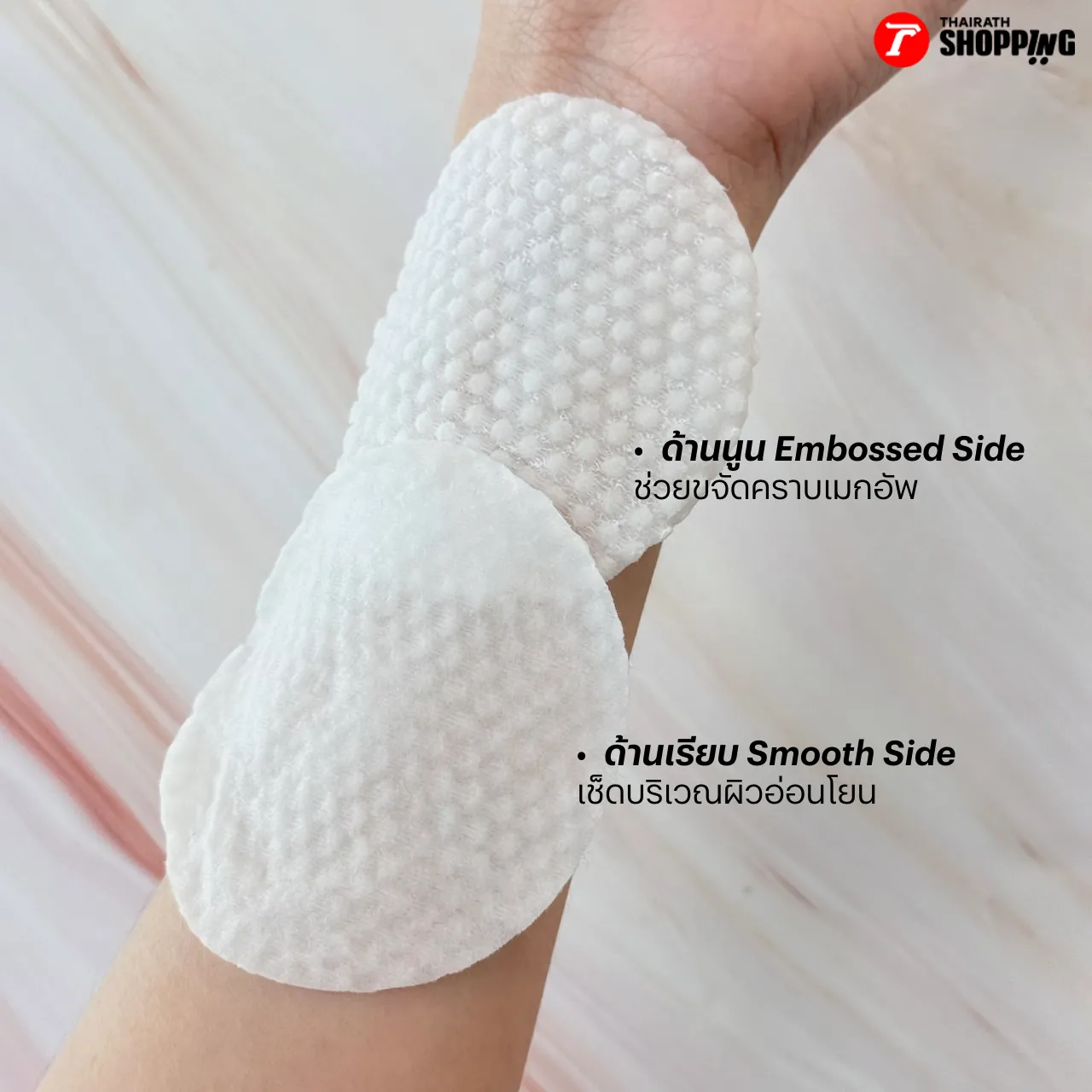 นอกจากประสิทธิภาพในการทำความสะอาดแล้ว คลีนซิ่งแพดสูตรนี้ยังออกแบบมาให้สามารถใช้งานได้แบบ 2 in 1 ในส่วนของด้านนูนใช้เช็ดเครื่องสำอางได้ง่าย ให้ความรู้สึกที่นุ่มและไม่บาดผิว สำหรับด้านเรียบใช้เช็ดบริเวณผิวบอบบางอย่างรอบดวงตาได้ โดยไม่รู้สึกระคายผิว