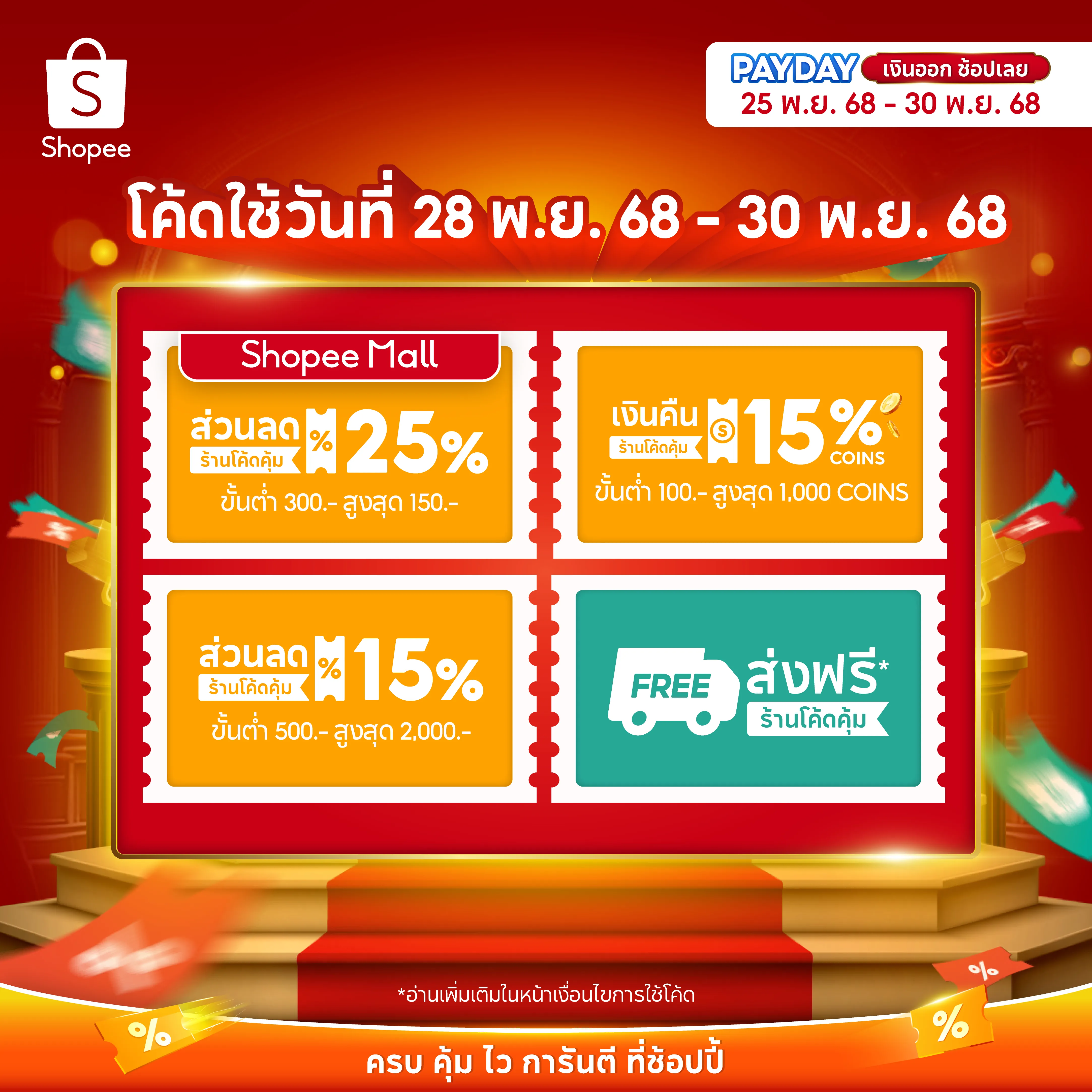 ช่วงท้ายเดือนพฤศจิกายนแบบนี้ ใครที่กำลังวางแผนช็อป หรือเตรียมซื้อของขวัญ ไม่ควรพลาดกับ Shopee 11.25 Payday เงินออก ช็อปเลย พบกับสินค้าจากหลากหลายแบรนด์ดังที่ลดราคากว่า 70% มาพร้อมกับโค้ดรับเงินคืน และโค้ดส่วนลดส่งฟรี เก็บโค้ดและช็อปพร้อมกันได้ตั้งแต่วันที่ 25-30 พ.ย. 2568 นี้