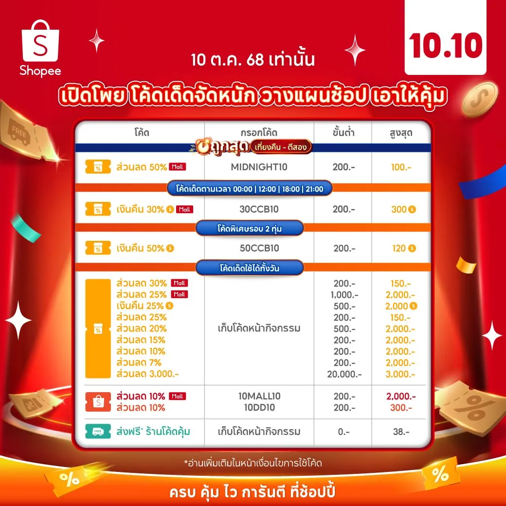 เก็บโค้ดส่วนลดและใช้ได้วันที่ 10 ต.ค. 68 เวลา 00.00-02.00 น.